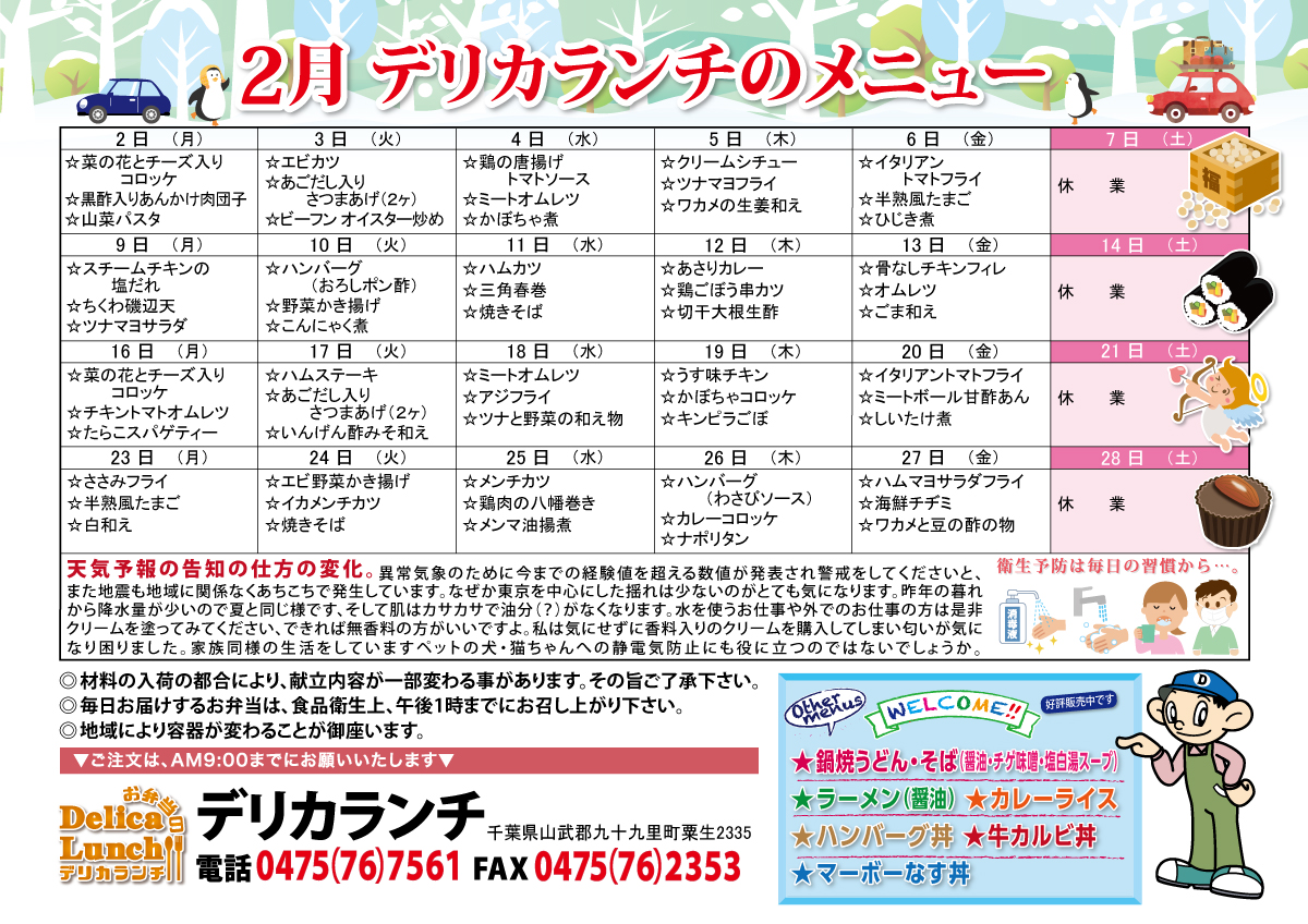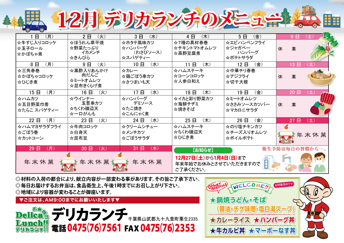 デリカランチの日替わりメニューです。ランチメニューのダウンロードできます。千葉県の方は必見
